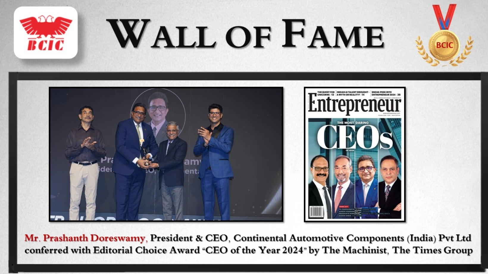 roopa@bcic.in Why Be Part of the Wall of Fame? Showcase Your Excellence : Let your peers and the broader business community recognize your successes.