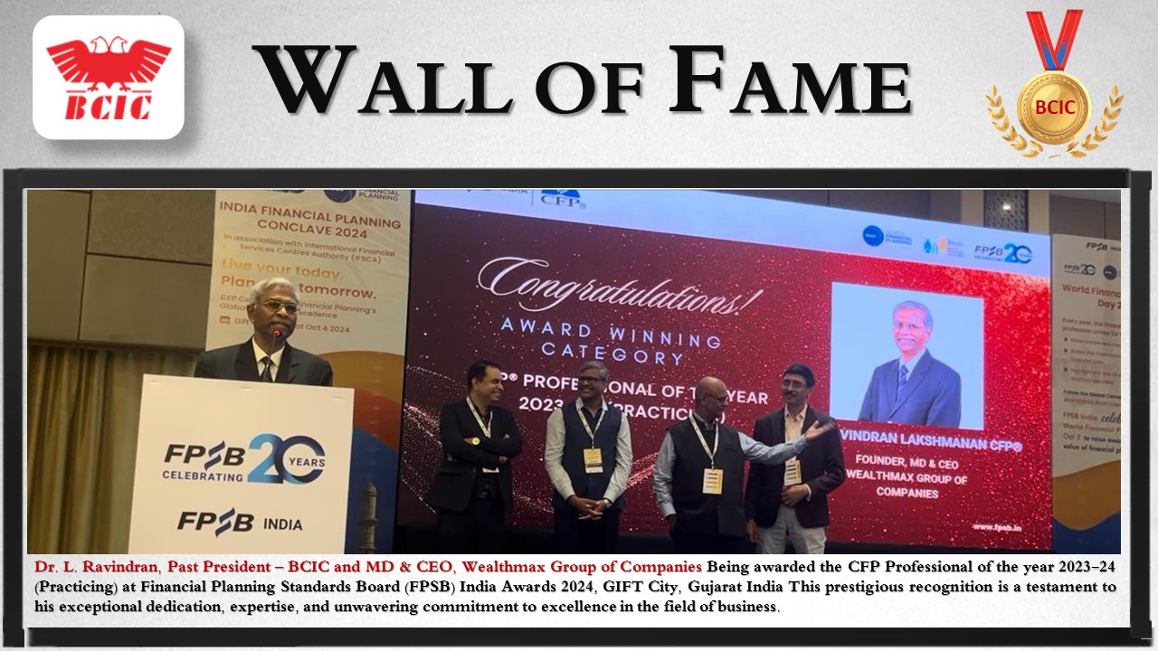 Celebrating Achievements, Honoring Excellence At Bangalore Chamber of Industry and Commerce (BCIC), we take pride in the accomplishments of our esteemed members and member companies. To showcase your incredible contributions and highlight the milestones you’ve achieved, we are thrilled to introduce the BCIC Wall of Fame – a dedicated space where your success stories take center stage!